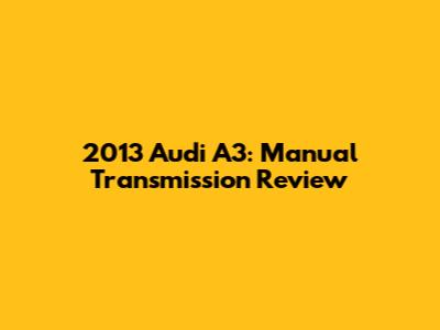 The 2013 Audi A3 with a manual transmission is a fantastic choice for driving enthusiasts who appreciate the engagement and control that a manual gearbox offers. It's a stylish, well-built car that delivers a rewarding driving experience. While it may not be the most practical choice for everyone, it's definitely worth considering if you're looking for a fun and engaging compact car. So, go ahead and give it a try – you might just fall in love with the feeling of shifting gears yourself. Happy driving!