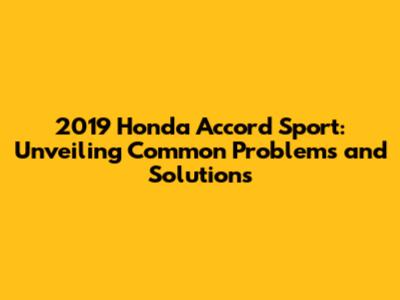 2019 Honda Accord Sport: Common Issues & Solutions