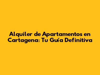 Alquiler De Apartamentos En Cartagena: Guía Completa
