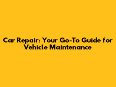 Car Repair: Your Go-To Guide For Vehicle Maintenance