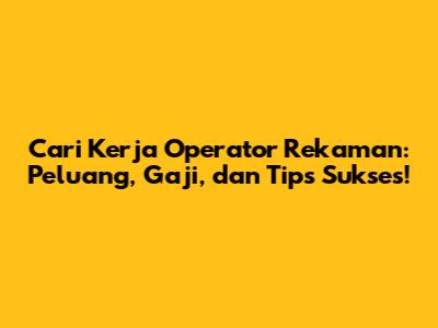 Mencari Lowongan Kerja Operator Rekaman: Tips Jitu!