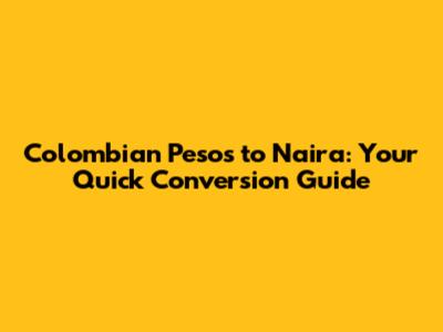 Colombian Pesos To Naira: Your Quick Conversion Guide
