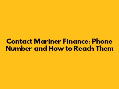 Mariner Finance Phone Number