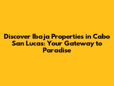 Hey guys! Are you dreaming of owning a slice of paradise? If you're looking for a stunning getaway or a lucrative investment, Ibaja Properties in Cabo San Lucas might just be the answer to your prayers. Cabo San Lucas, with its breathtaking landscapes, vibrant culture, and luxurious lifestyle, has become a top destination for real estate. Let's dive in and explore what makes Ibaja Properties a standout choice for those seeking their own piece of this Mexican haven. Seriously, this place is amazing!
