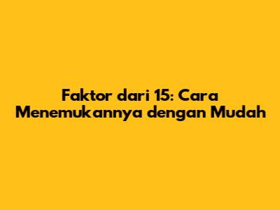Mencari faktor dari 15 sebenarnya cukup sederhana. Faktor dari 15 adalah bilangan yang dapat membagi 15 tanpa sisa. Berikut adalah langkah-langkah yang bisa kamu ikuti: