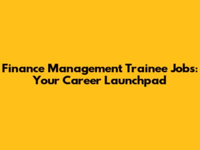 Finance Management Trainee Jobs: Your Career Launchpad