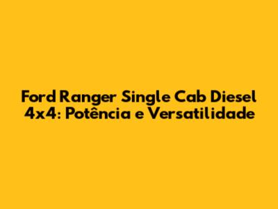 Ford Ranger Single Cab Diesel 4x4: Potência E Versatilidade