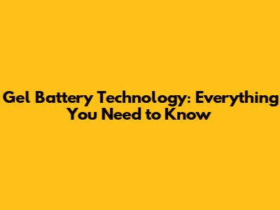 Gel Battery Technology: Everything You Need To Know