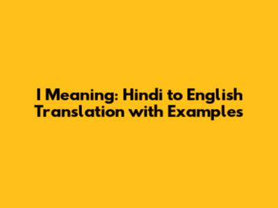 I Meaning: Hindi To English Translation With Examples