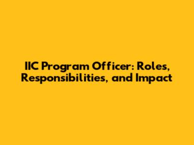 IIC Program Officer: Roles, Responsibilities, And Impact
