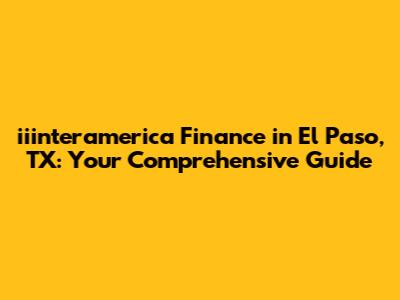 Hey there, finance enthusiasts! Let's dive into the world of iiinteramerica Finance in El Paso, TX. This guide is designed to give you a comprehensive understanding of what iiinteramerica Finance is all about, their services, and how they can potentially assist you with your financial needs. We'll explore their presence in El Paso, the types of financial solutions they offer, and what you need to know before engaging with them. So, buckle up, grab your favorite beverage, and let's get started on this financial journey together!