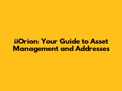 IiOrion: Your Guide To Asset Management And Addresses