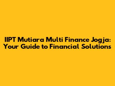 Hey guys! Are you looking for financial solutions in Jogja? Let's dive into IIPT Mutiara Multi Finance Jogja, a place where you can find various financing options to meet your needs. Whether you're planning to buy a new vehicle, renovate your home, or need extra funds for your business, understanding what IIPT Mutiara Multi Finance Jogja offers is super important. In this article, we'll explore their services, how to contact them, and what makes them a reliable choice for your financial needs.