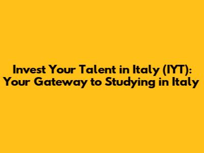 Hey guys! Ever dreamt of studying in Italy? Well, let me introduce you to Invest Your Talent in Italy (IYT), an awesome program designed to help talented international students like you pursue master's degrees and enhance your skills in Italy. Think of it as your golden ticket to not only academic excellence but also a fantastic career boost! This guide will walk you through everything you need to know about IYT, from eligibility and application to the incredible opportunities it offers. Italy is known for its rich culture, delicious food, and world-renowned education system. By participating in the IYT program, you can immerse yourself in this vibrant environment while gaining valuable knowledge and experience in your chosen field. Whether you're interested in engineering, economics, management, or any other field, IYT offers a wide range of programs to suit your interests and career goals. Imagine studying at a prestigious Italian university, collaborating with leading researchers, and networking with industry professionals. With IYT, all of this is within your reach. So, if you're ready to take your academic and professional journey to the next level, keep reading to discover how Invest Your Talent in Italy can make your dreams a reality. Get ready to embark on an unforgettable adventure filled with learning, growth, and endless possibilities. Let's dive in and explore the world of IYT!