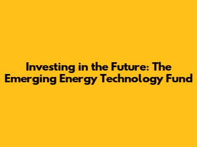 Investing In The Future: The Emerging Energy Technology Fund