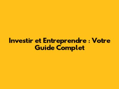 Investir Et Entreprendre : Votre Guide Complet