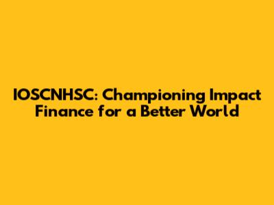 IOSCNHSC: Championing Impact Finance For A Better World