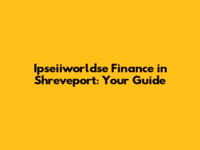 Ipseiiworldse Finance In Shreveport: Your Guide