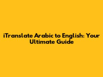 ITranslate Arabic To English: Your Ultimate Guide