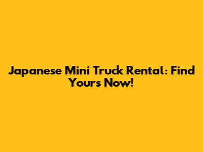 Japanese Mini Truck Rental: Find Yours Now!