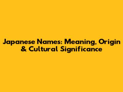 Japanese Names: Meaning, Origin & Cultural Significance