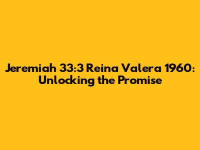Hey guys! Have you ever stumbled upon a Bible verse that just speaks to you? For many, Jeremiah 33:3 in the Reina Valera 1960 version is one of those verses. It's powerful, it's promising, and it's packed with meaning. Let's dive deep into this scripture and see what treasures we can unearth, shall we?