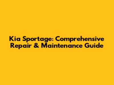 Kia Sportage: Comprehensive Repair & Maintenance Guide