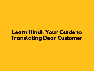 Learn Hindi: Your Guide To Translating 'Dear Customer'