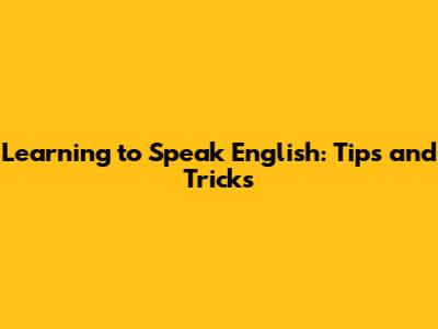 Learning To Speak English: Tips And Tricks