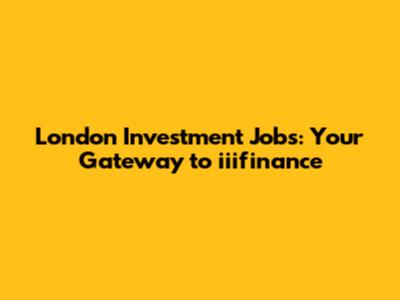 London Investment Jobs: Your Guide To Iiifinance