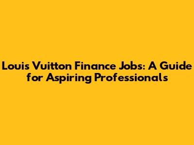 Louis Vuitton Finance Jobs: A Guide For Aspiring Professionals