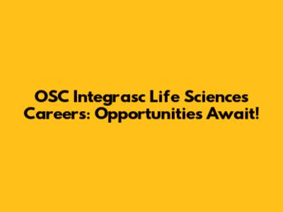 OSC Integrasc Life Sciences Careers: Opportunities Await!