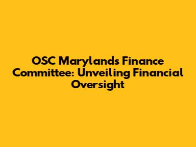 OSC Maryland's Finance Committee: Unveiling Financial Oversight