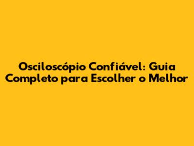 Osciloscópio Confiável: Guia Completo Para Escolher O Melhor