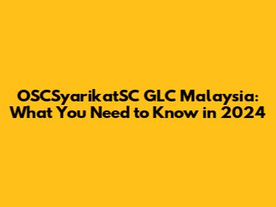 OSCSyarikatSC GLC Malaysia: What You Need To Know In 2024