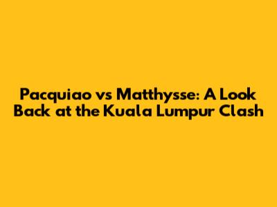 Hey guys! Let’s dive into a memorable night in boxing history: the clash between the legendary Manny Pacquiao and the tough-as-nails Lucas Matthysse. This fight, held in Kuala Lumpur, Malaysia, was more than just a boxing match; it was a statement, a display of resilience, and a testament to Pacquiao's enduring legacy. So, grab your gloves (figuratively, of course) and let's get into it!