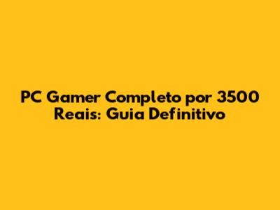 PC Gamer Completo Por 3500 Reais: Guia Definitivo