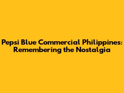 Pepsi Blue Philippines: Remembering The Iconic Commercials