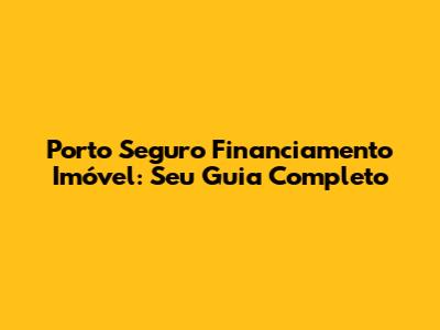 Porto Seguro Financiamento Imóvel: Tudo Que Você Precisa Saber