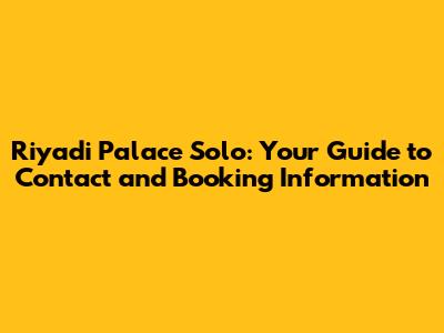 Riyadi Palace Solo: Contact & Booking Info