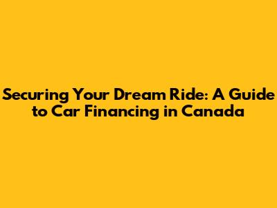 Securing Your Dream Ride: A Guide To Car Financing In Canada