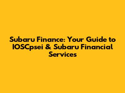 Subaru Finance: Your Guide To IOSCpsei & Subaru Financial Services
