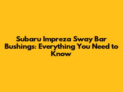 Subaru Impreza Sway Bar Bushings: Symptoms, Replacement & Guide