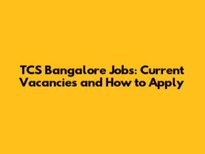 TCS Bangalore Jobs: Current Vacancies And How To Apply