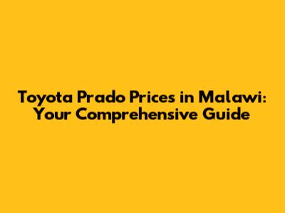 Toyota Prado Prices In Malawi: Your Comprehensive Guide