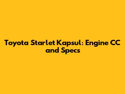 Toyota Starlet Kapsul: Engine CC And Specs