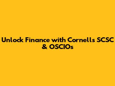 Unlock Finance With Cornell's SCSC & OSCIOs