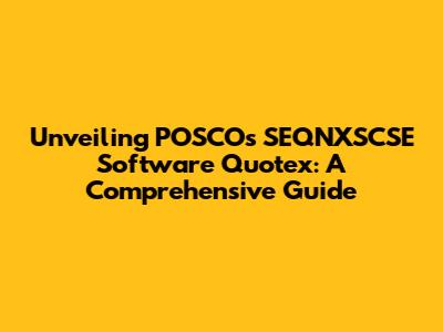 Demystifying POSCO SEQNXSCSE Software: What Is It?