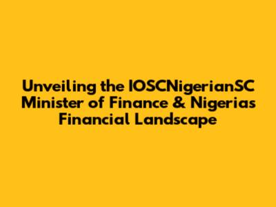 Unveiling The IOSCNigerianSC Minister Of Finance & Nigeria's Financial Landscape