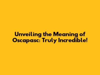 Unveiling The Meaning Of Oscapasc: Truly Incredible!